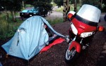 A soggy morning: The instant I stick my head out of my very wet tent, a photo flash goes off. I don’t know how long he had to wait but Joe is ready with his camera. What are friends for?