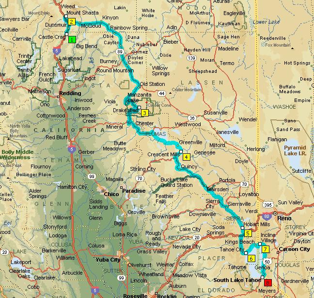 - Castle Crags State Park, CA to South Lake Tahoe, NV