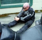I’m bringing up the rear and as I watch each in turn pass these trucks in such harrowing, adverse conditions, I can feel the apprehension and dread building up in me. Pork Chop takes his turn and pulls around the last logging truck into the opposing lane on this narrow two lane road and disappears into the mist. I grit my teeth and wait to see him pop out in front of the leading truck but all I see is a car in the opposing lane headed his way. Oh shit….the car emerges past the last truck and Jeff is nowhere to be seen. It turns out he saw the car coming as he was passing in the “car wash” and he darted back in between the two trucks which had nothing more than a car length between them. I can just imagine the truckers shaking their heads at the crazy fuckers on the motorcycles. It makes me realize how blessed we’ve been on all these trips we’ve done over the years and how none of us have been hurt. Thank you, angels!