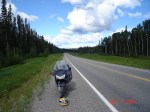 Still no sign of the guys. I head down the road but I’m soon halted by yet another Alcan construction project – joy. I sit there for fifteen minutes and now it’s been over two hours since we parted company. The flagger finally waves me on and halfway through the lengthy construction zone, I spot Paul coming toward me on his FJR. He waves, does a u-turn in the gravel and leads me through. Once we hit pavement, we pick up the pace. Along the way, we see an amazing assortment of wildlife, the most we’ve seen on the entire trip. So on this particular day, we finally find the legendary mosquitoes everyone warned us about as well as the wildlife we were told to expect.