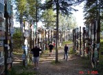After supper, we walk over to the Sign Post Forest which was started by some homesick guy who was a worker on the Alaska Highway during World War II. He nailed a sign with the name of his town on a post and others followed suit. There are now signs from all over the world and the site covers multiple acres in the center of town. Pretty cool.