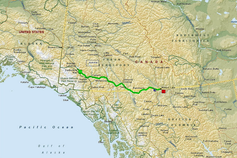 We are told that we’ll finally find decent roads East of Whitehorse and we do. The roads are on firm ground as the terrain changes from tundra and taiga to fir forests. And then, just as we are thinking that we might finally get a dry day on this trip, it rains. Oh well.