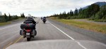 It’s our second day of travel on the Alaska Highway and we are deep in the middle of serious nowhere. This road is the only way in or out of this region and the side roads that branch off of it dead end beyond nowhere. The Alcan is frequented by RVs and motorcycles and little else: various Harleys, lots of BMW GS dual sports, Honda Gold Wings w/ trailers, sidecar and trike rigs and lots of two-up riding. As we meet other riders at gas stations, we compare the grime levels we’ve achieved while we share information about the road ahead or behind.