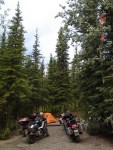 We enter the Park and there are signs everywhere warning of wildlife but all we see are red squirrels playing in the campground. We choose a primo site in the Wolf campground and get set up. We head over to the visitor’s center and learn that the bus tour of the park is an 8 hour affair. Most of the park’s roads are closed to visitor traffic so it’s the only way to see the park’s interior but after so much saddle time, sitting in a bus for that long really turns us off on that notion. We decide that tomorrow, on our day off, we’ll ride over to the big visitor’s complex, ride what roads are open to the public and just generally take it easy.