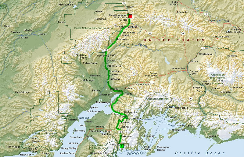 We have a scrumptious breakfast in lovely Seward and I buy a perfect t-shirt called “Alaska Snacktime“, designed by Ray Troll of Ketchikan, Alaska. We ride North on the beautiful Kenai Peninsula and realize that if we ever get back up here again, it will require a complete ride from end to end to do it justice.
