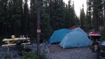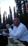 We stay at a nice campground in Glennallen that has clean showers that come with fresh towels and a new bar of soap; a nice touch and very welcome after a grimy day on the road. Setting our tents up on the tundra amongst the tiny trees is like sleeping on a big sponge. After a caribou dinner, we settle into camp and crank up the cigars and citronella candles. We set the Skookumchuck Skeeter Scale (SSS) at 6. My mosquito proof clothing actually works. Midnight arrives and so much for buying headlamps at REI. I can easily read a book. The sun merely dips below the horizon for 4 hours and then reemerges.
