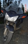 Yesterday’s rain storm in the mountains was nothing. Today, the adventure touring really kicks in. The Alcan Highway is nothing more than a thin layer of asphalt on top of a thick ribbon of gravel on top of the tundra so construction repairs are a constant. There are potholes and drifts of loose gravel and fresh oil everywhere. If the gravel section is wet, the mud is as slippery as KY jelly which may be fun in the bedroom but nerve wracking on a big motorbike.