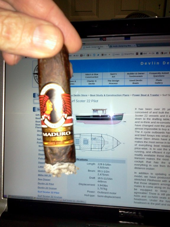 Tonight I’m smoking something new — Indian Tabac Super Fuerte Toro Maduro. I think it was included in a Rocky Patel sampler pack but I don’t think it is made by Rocky. Nevertheless, Leafmeister Cassell has been egging me on to try it and it is a wonderful maduro stick with rich flavors — it’s smooth and sweet with just a hint of spice and loads of smoke in a box press. It’s lip smacking good!