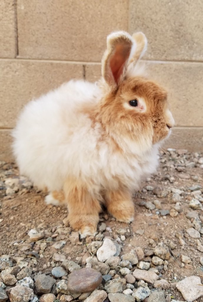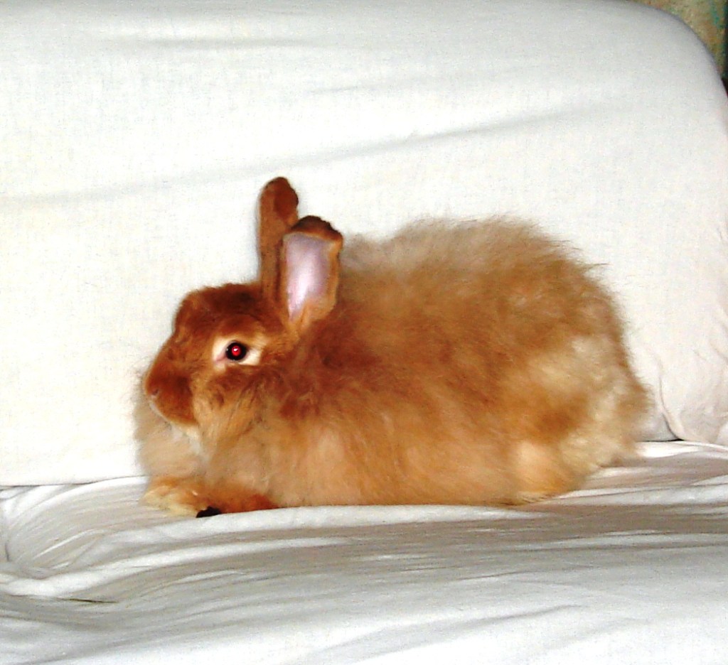 His momma, sister, and he were dumped off in a cardboard box unceremoniously in the middle of the night at the door of Rabbit Haven, the rabbit rescue center in Gig Harbor, Washington, dehydrated and half starved to death. They were lovingly brought back to health and we decided to adopt all of them. Being Angora rabbits, Inga figured she could use their fur to make Angora yarn while giving them a good home. We added a fourth Angora, Freya, and got to work. With Angora yarn going for $100 per ounce, I had visions of quitting my day job and being a rabbit wrangler but it was not to be. While Rosie, the momma rabbit, and Freya had excellent fur, the babies were not pure bred Angoras and didn’t have suitable coats.