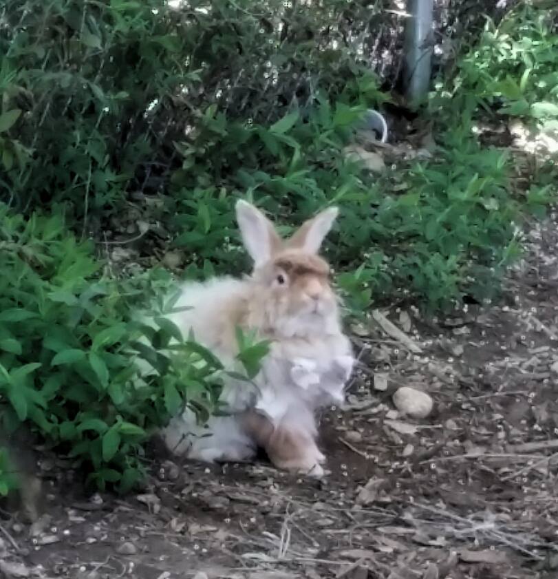 My brother, Eric, a surgeon, gets out his tools and trims all the mats off Winston. He looks positively sporty. His hopping improves and now includes occasional zoomies. We love watching him traverse the yard and marvel at how he is somehow always undercover in the Trumpet vines when the neighborhood Cooper’s Hawk does a reconnaissance pass over the yard. One day, the hawk lands on the wall and takes a good look around the yard. I’m sitting opposite him on the patio and in my sternest voice, I say, “Hey, don’t even think about it, bird brain!” He stops scanning, makes eye contact, gives me some attitude, and flies off. After that, he starts doing low level passes, a foot off the deck through the yard, and on one particular day, as he comes over the back gate, he flies down right over Gracie’s dozing head. She is instantly on her feet and chasing him while snapping at his tail feathers, inches away, the entire length of the yard. The bird and I make eye contact as he flies past me sitting at my table and I can see the thought bubble over his head. “Shit! The rabbit has a ninja bodyguard! Less hazardous prey awaits elsewhere!” Damn straight, velociraptor! He never returns.