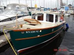 Sam Devlin’s “Surf Scoter” is named after a duck of the same name known for its propensity to dive for mollusks and crustaceans in ocean surf and breaking waves. They are commonly seen on the Pacific Coast in winter, where they sometimes feed quite close to rocky headlands and in shallow inlets. All in all, great attributes for boat designed to explore the inlets of Puget Sound. We’ve been through a variety of rough water during the 2005 / 2006 Winter and nothing seems to really trouble it. Bunky just bobs along like a bathtub toy on big swells and cuts through chop with aplomb.