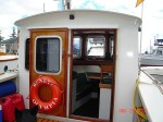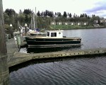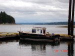 28-Aug-2005: Today, we never leave the dock. We just hang out in the marina on the boat and by the end of the day, we are both amazed at how relaxed we are. Sam shows up at the marina, jumps into one of his boats and as he’s motoring past us, he asks if we’ve been out yet today. ‘Nope’, we reply. ‘We’re working on that Zen thing.’ He smiles. We really are enjoying getting to know the boat and figuring out how things work and where to store stuff. Every inch of the cabin has been designed for maximum use and is very well thought out. Unlike Sam’s larger designs that are more cabin-like in their amenities, the 22′ Surf Scoter is more akin to a small truck camper or a sailboat. Inga remarks that it’s like spending time in a really cool treehouse. The two year old daughter of a neighbor in a sailboat on our dock refers to Bunky as the “caboose boat”.