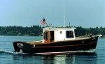 Inga and I accompany Gene, our business partner, to the Seattle Boat Show at the Kingdome. We’ve been swept up by his enthusiasm for boating but once we’ve walked around for awhile, we soon lose interest with all the ostentatious, fiberglass mega-yachts or the purely fishing boats. That is, until we round the corner and spot a boat that instantly enchants us. It looks like a little trawler or tug boat. It’s only 22 feet long and it is utterly dwarfed by the giant boats around it. Its hull is dark green, the pilot house is white and it’s trimmed in teak. It is absolutely unique and delightful. We walk up to it with our mouths open and a sense of wonder. It’s like we’ve encountered a magical creature deep in the woods and we’re not quite sure it’s real. Standing next to the boat is the man who built it, Sam Devlin, of Devlin Designing Boat Builders in Olympia, Washington. He explains that it is his Surf Scoter model, named after a very seaworthy duck, and he invites us to take a look inside. We’re awed by the craftsmanship and style of the boat. We also take a real liking to Sam. He’s down to Earth and genuine in a Prairie Home Companion way. We feel that this is more than just buying a boat. It’s about building a lifelong relationship with a true craftsman who loves what he does. So, that’s it, we’re hooked. In short order, we put down a deposit to have one built. Typically, we start reading every available book and magazine about the amazing Puget Sound marine environment along with boating in general and we chatter constantly about the adventure of cruising its many waterways. But it all comes to a screeching halt as the banker we’ve applied for a loan with explains to us ‘kids’ that it is customary to first buy a house, then a boat. A house??? We tell him that we don’t want a house with all those chores and lawn mowing and screwy neighbors with devilish children. Yuk! We purposely rent and we want a boat! Then he very politely points out that every dime we have is wrapped up in risky real estate development, we have no savings and no credit to speak of, one way or the other. So no boat for us. Inga and I briefly discuss having Sam at least build us a rowboat but we’re too discouraged. We let go of the dream and move on with life. In 1993, we buy our first house in a neighborhood South of downtown Seattle.