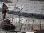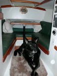 1/2-Oct-2005: The name Bunky has been removed off the boat’s transom with a heat gun. All that is left is Olympia, the boat’s port of call. The new name has been ordered. It’s been raining on and off all weekend as a storm is blowing through so we stay put at dock and go for walks with Freya. A bunch of sailboats head out to go play in the storm manned with 4 people per boat, dressed from head to toe in rainsuits. Otherwise, all other boats remain in the marinas.