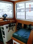 Sam walks us through the pre-float checklist and then takes us out into the Olympia harbor for some training. The maiden voyage is both exciting and a little nerve wracking. First off, Olympia is a true working harbor with loads of pleasure boats, container ships, Police boats plus current, tides, shoals and wind. Sam has me practice docking right in the middle of all this and when I question his motives, he says, very good naturedly, that he’s purposely putting me under some pressure. Ok. So be it. After years of riding motorcycles up to speeds of 130 MPH at the race track, I’m mildly amused, yet cautious. Traveling at 3 knots is very manageable even if the boat has no brakes and is about as responsive to the steering wheel as an early 70s Cadillac. After a couple of practice dockings, he says I’ve got good instincts and that I don’t panic. Ok but I sure don’t feel confident. Knowing how I really like to look competent, I’ll be practicing extensively. And then Inga wants me to train her. Gulp!